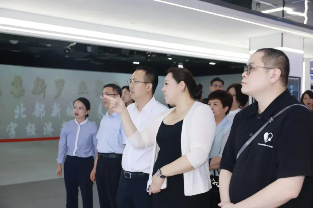 通过展厅讲解员的现场讲述,考察团对北部新城的总体规划、区位优势、园区的产业配套、人才招引及项目建设等情况有了更进一步的了解。