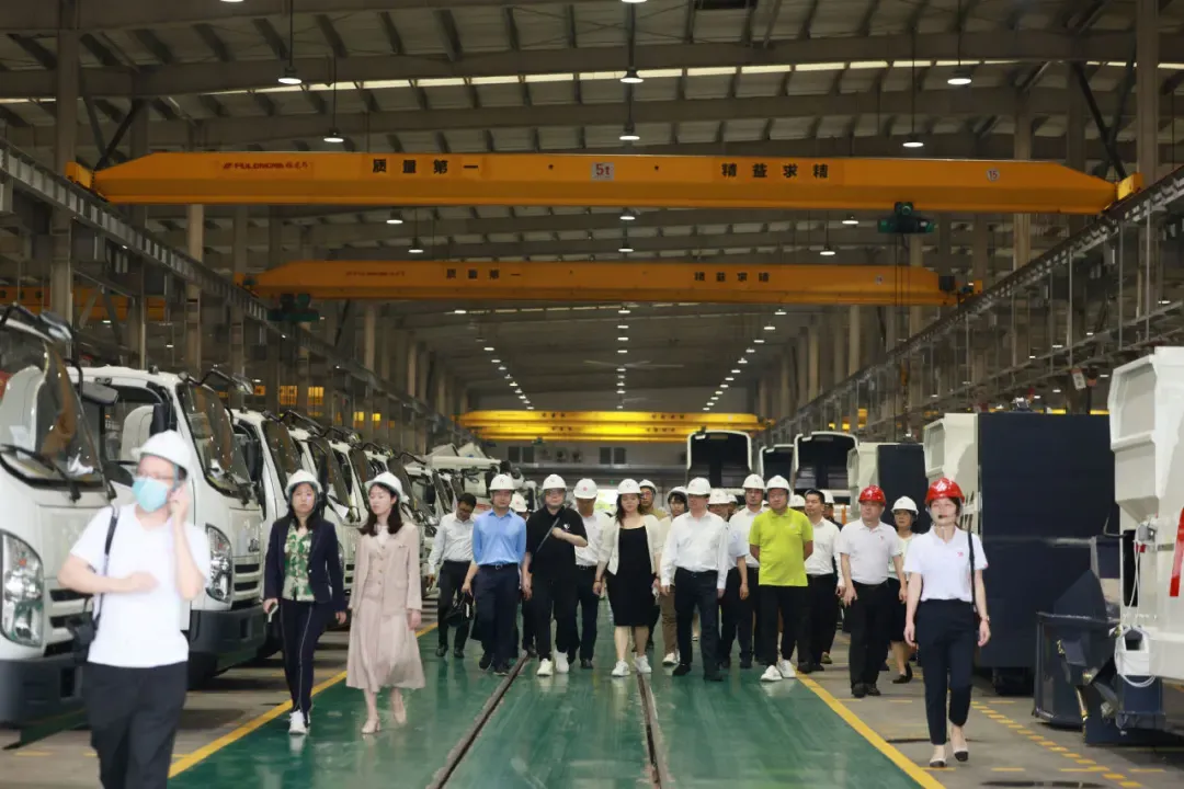 考察团一行参观了福龙马一线生产车间、各类环卫设备作业场景演示,对福龙马集团全产业链布局、技术创新等情况进行了深入的交流。