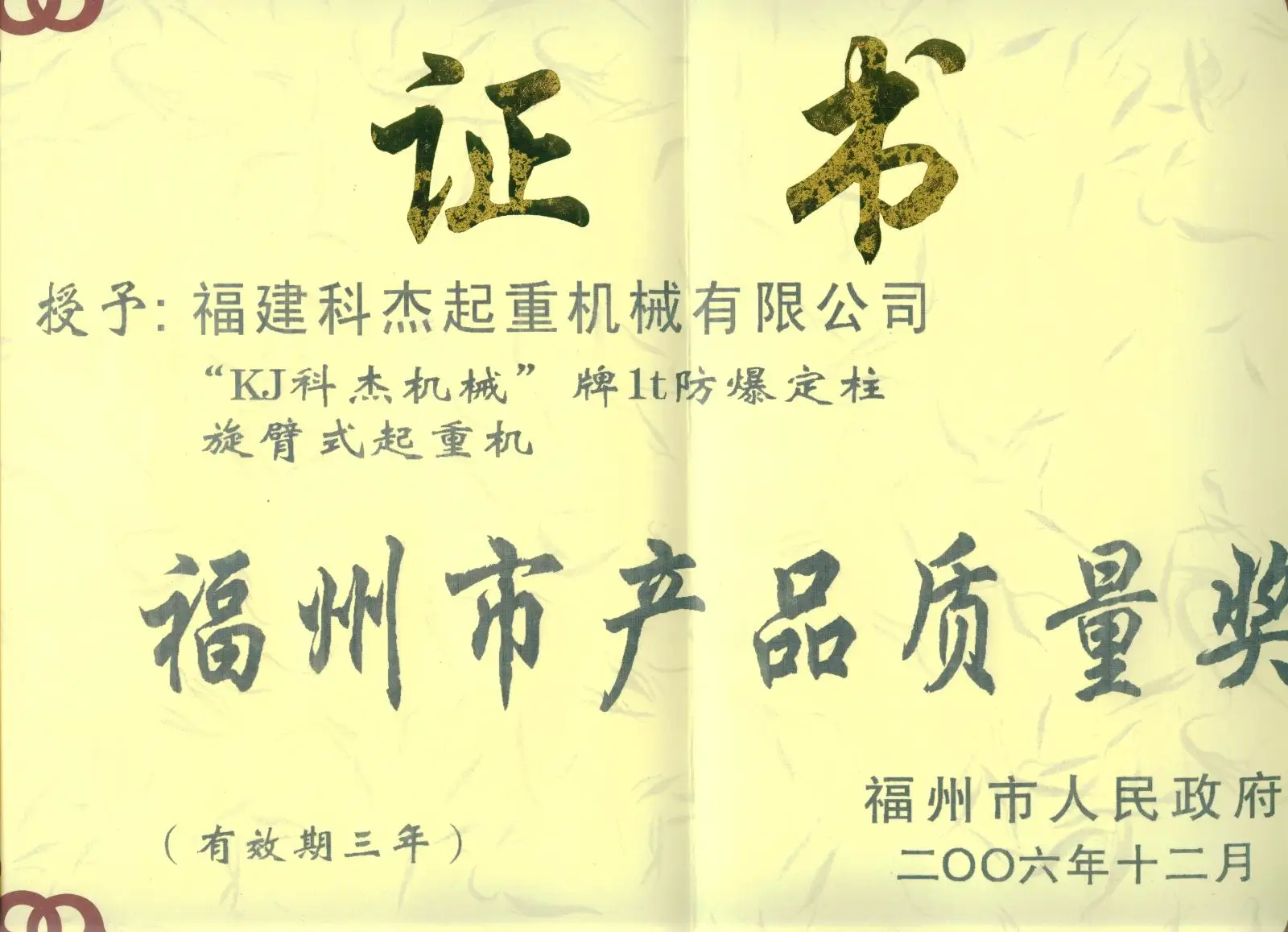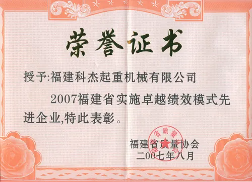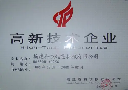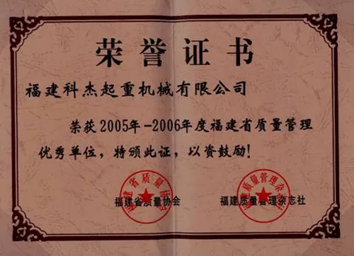 企业荣誉 2005-2006年福建省质量管理优秀单位 2002年特种设备安全考核优胜 2005-2006年福建省质量管理优秀单位 2006-2008年高新技术企业 2005年福建省质量协会团体会员证书 2005年福建省质量协会团体会员 2…