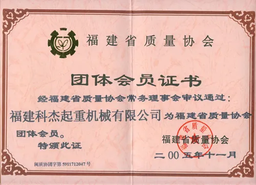 2005年福建省质量协会团体会员证书 |