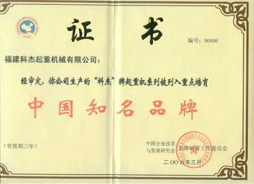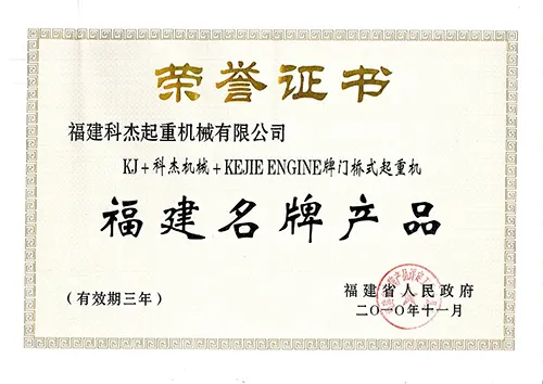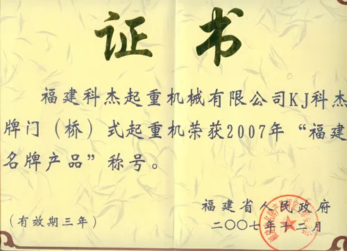 2014年起重福建名牌产品 |