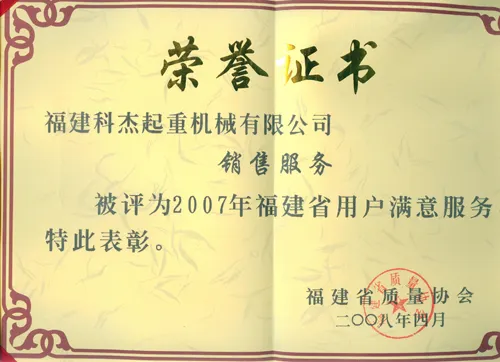2007年福建省用户满意服务 |