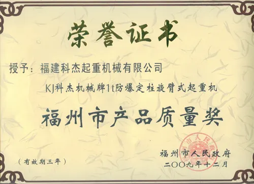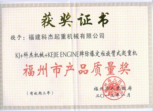 2013年起重福州市产品质量奖 |