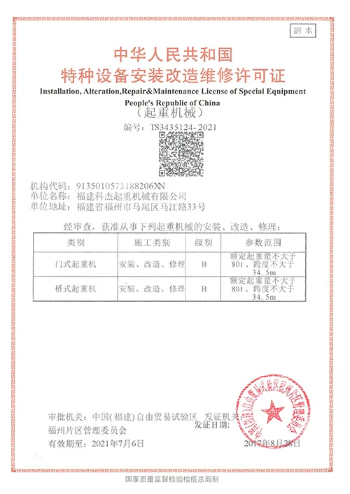 2017-2021年起重特种设备安装改造维修许可证(副本)TS3435124-2021 |