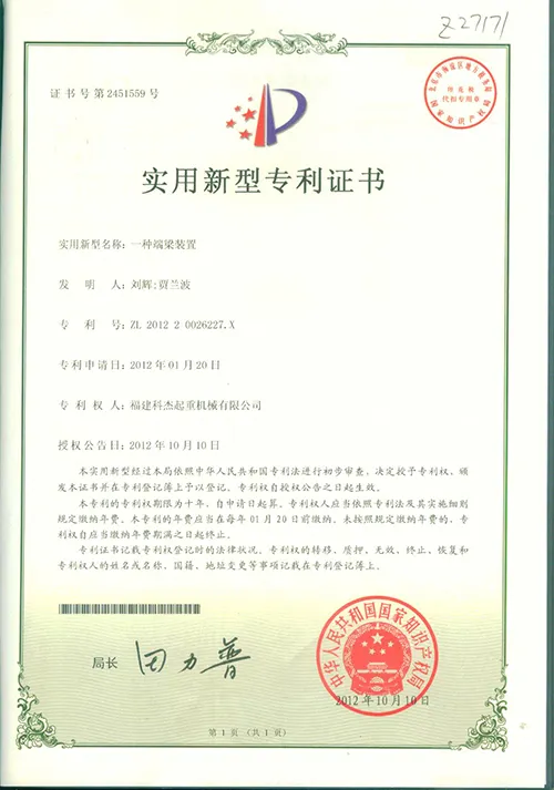 起重2012.10.10 证号2451559 端梁装置 |