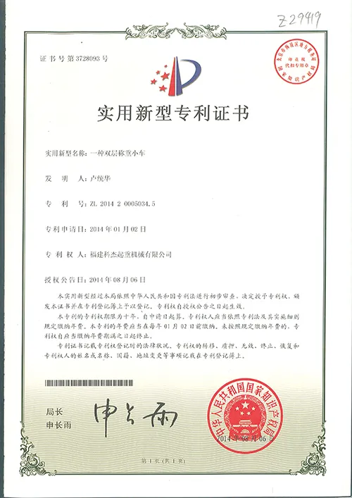 起重2014.08.06 证号3728093 双层称重小车 |
